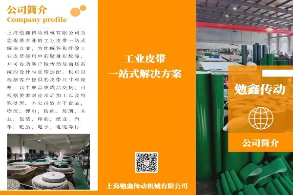 上海勉鑫传动机械有限公司致力于纺织、玻璃,食品、木业、包装、印刷、纸业、汽车、电子、电缆等行业。 经营项目: PVC、PU、PE、SIR、PVK.帆布输送带、输送机械、食品带,皮带轮,扫描仪、打印机齿形皮带、微型马达传动皮带广角带,同步轮,齿形皮带。拥有经验丰富的人员,为客户选择适当的皮带,提供可靠及有系统的服务,解答和排除皮带作业中的疑难和故障,并可运用电脑软件协助机械厂商及客户做传动及输送系统的设计与皮带选配。也可以根据客户提供的皮带尺寸和规格,以环带或开口带交货,根据要求在以上皮带表面打孔﹑开槽﹑刨齿﹑加海绵﹑加各种硬度的橡胶(红色或绿色)及无纺布。